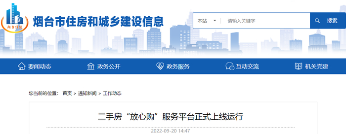 为保障二手房交易安全,维护交易双方合法权益,提升便民体验,由烟台市住房保障和房产交易中心研发的我市二手房“放心购”网上交易服务平台于9月16日上线运行。个人用户可以通过烟台市住房和城乡建设局微信公众号公共服务平台登录办理二手房交易业务,房地产中介机构可以通过烟台市存量房网签备案服务平台登录办理业务。