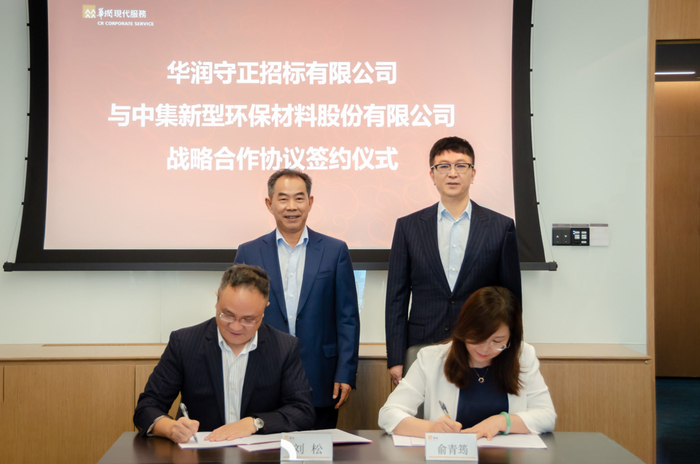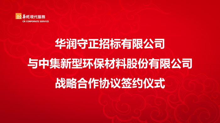 9月15日,华润现代服务旗下华润守正招标有限公司与中集集团旗下中集新型环保材料股份有限公司在深圳中国华润大厦签署了战略合作框架协议。