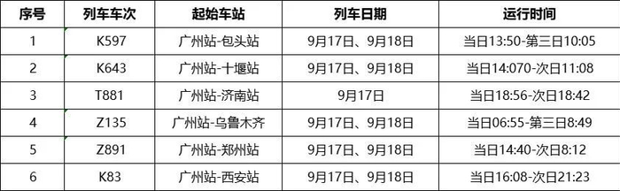 因疫情防控需要,在9月17、18日以下时间段相应区间站曾乘坐过K597、K643、T881、Z135、Z891和K83的市民朋友,请主动向社区报备并就近进行核酸检测,做好3天2检及自我健康监测,如出现不适请及时就医。
