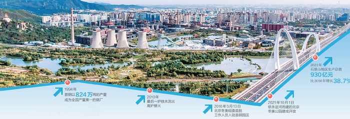 这座了不起的首钢园,是京西石景山发展的缩影。100多年前,钢铁巨人在京西崛起。1952年,石景山因厂设区,一路见证了首钢生产的火红年代和由火到冰的涅槃重生。从服务首钢到改造首钢再到借势首钢发展,近年来,石景山在城市更新和产业转型上不断发力,打造了滑雪大跳台、冬奥公园等一个个京西新地标,老工业区一改过去“灰头土脸”的形象,实现了向绿色高端之城的华丽蝶变。