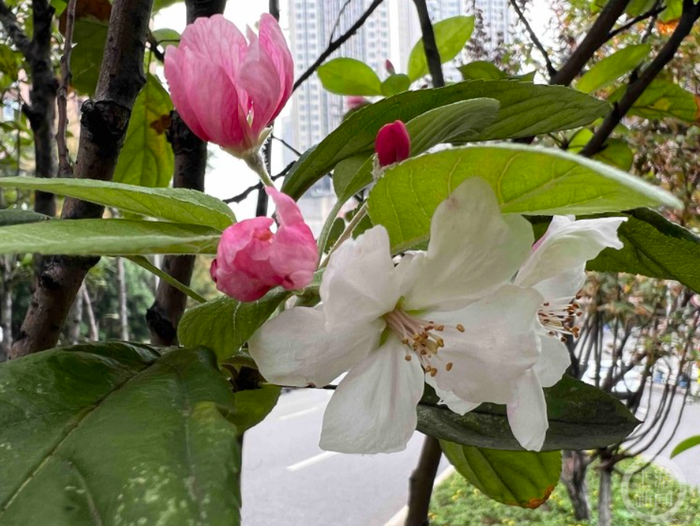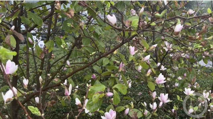 海棠、紫玉兰、木本绣球、美人梅……这些原本春季开花的植物最近在山城部分街头绿地中,悄然二次开花了!