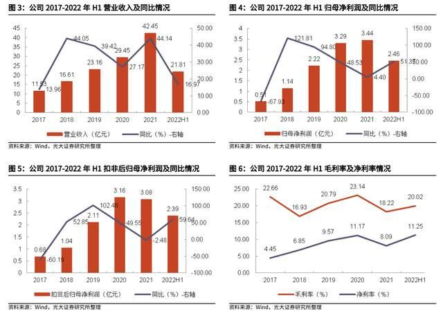 2022 年上半年公司实现营业收入 21.81 亿元,同比增长 16.97%;实现归母净利润 2.46 亿元,同比增长 51.37%;实现扣非后归母净利润 2.39 亿元,同比增长 59.64%。
