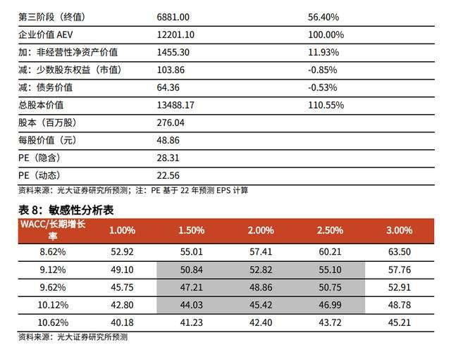 在 FCFF 估值法下,选取敏感度分析区间的±0.5%,公司的合理估值区间为 44.03-55.10 元。
