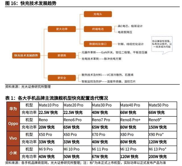 我们认为随着快充产品的不断成熟、成本下降以及对于消费者体验带来的升级,未来智能手机快充功率总体将呈不断上升趋势。