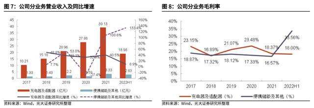 公司的大功率移动电源及户外储能电源、桌面小风扇、户外储能露营灯等便携式储能产品市场开拓顺利,2022 年 H1 便携储能业务实现营收 2.83 亿元,同比增长 133.4%。