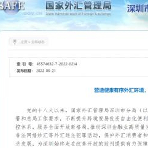 近日,国家外汇管理局深圳市分局发布“营造健康有序外汇环境,推动深圳金融业高质量发展”的动态,称以“零容忍”态度严厉打击地下钱庄、跨境赌博、非法网络炒汇等外汇违法犯罪活动。