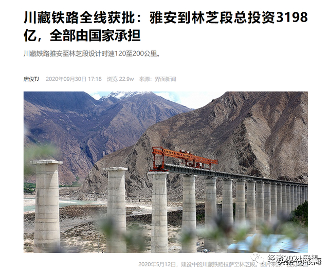 数据显示,普通铁路每公里的造价高达0.3~0.5亿元,高者可达3~4亿元。以2022年规划开建的川藏铁路(雅安至林芝段)为例,该路线的设计时速为120~200km,全程1011km,总投资为3198亿元,平均每公里造价高达3.16亿元,是京沪高铁单位造价(1.68亿元/公里)的1.88倍。