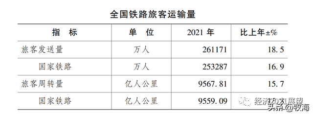 中国铁路具有垄断性,国铁在铁路客运领域有明显的比重优势。2021年的铁道统计公报显示,全国铁路旅客发送量为26.12亿人,其中国家铁路发送量为25.33亿人,占比高达96.9%。从体量来看,国家铁路把控着中国铁路的总体局势。
