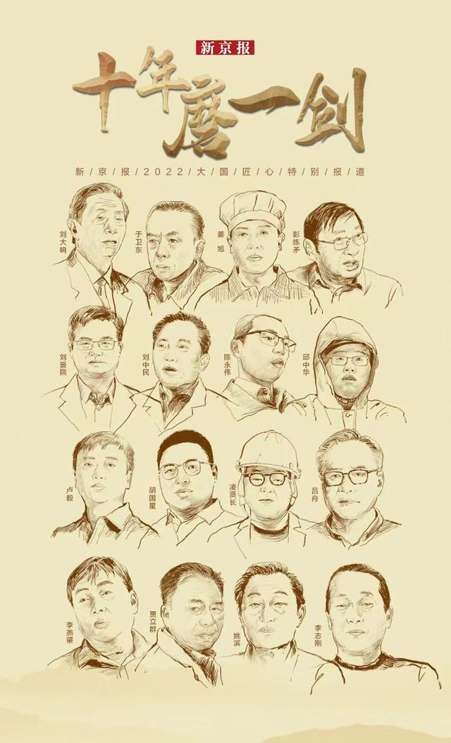 9月22日,新京报特别推出“大国匠心——十年磨一剑”2022特别报道。报道选取16个匠心人物,采访对象既有工程院院士、长期在科研一线的航空发动机研究者刘大响,工程院院士、中国“双碳”研究者刘中民,也有抗疫中的重症监护医生、问天实验舱总装班组长,更有环塔铁路的建造者、核电站的维修技师、超高压电网的守护者,同时也有北京中轴线申遗专家、文物修复者等。16组不同的匠心人物中,既有老一辈的开拓者,也有技术中坚的坚守者,还有勇于挑战的新青年,匠心在他们的悄然传递间迸发出非凡力量。我们再一次从这些生动鲜活的匠人故事中,看见匠心传承,致敬不屈奋斗的精神。