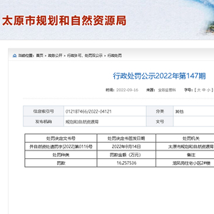 中国质量新闻网讯(高玉婷)9月16日,太原市规划和自然资源局网站公布,山西金峰房地产开发有限公司在建设龙凤苑住宅小区2#楼项目时,其2#楼建筑功能为单身公寓现为商业,功能改变,面积1270.12平方米。太原市规划和自然资源局依据《中华人民共和国城乡规划法》第六十四条规定,对山西金峰房地产开发有限公司罚款16.257536万元。