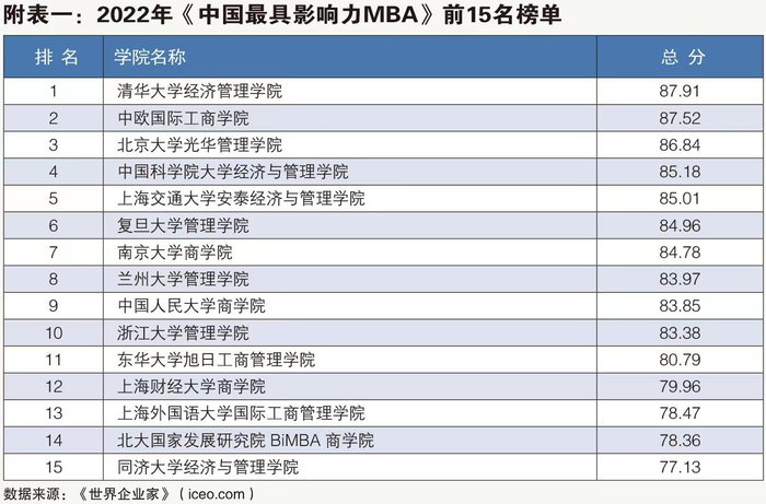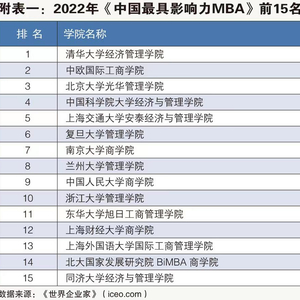 2022年中国最具影响力MBA榜单出炉