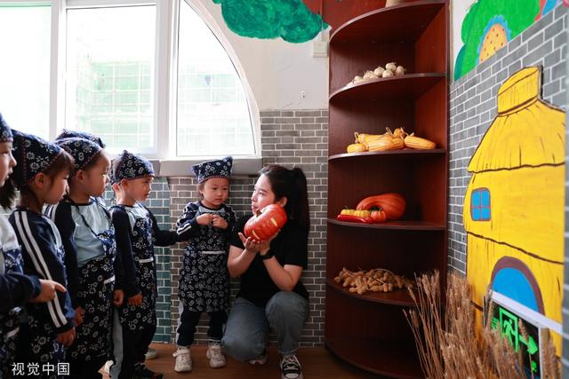 2022年9月22日,河北省邯郸市邯山区一幼儿园开展“多彩活动迎秋分”主题教育活动,学校老师带领学生认识农作物,开展立蛋游戏,迎接秋分节气的到来。