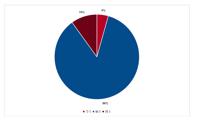 从学历上来看,拥有硕士学历的基金经理共有2671位,约占全市场基金经理人数的86%,其次为博士学历,约占全市场10%。而学历为学士的基金经理数量最少,且多为行业成立初期从业的资深基金经理。