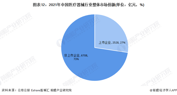 2021年,我国医疗器械上市企业的营业收入达到了2528亿元,约占整个医疗器械市场规模的27%。由此可见,我国医疗器械仍以非上市企业为主。