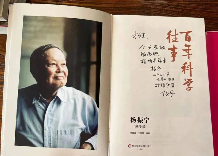 ——2022年7月24日,杨振宁给江才健在《百年科学往事:杨振宁访谈录》上的留言。