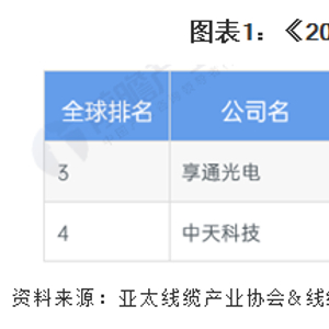 1、全球海底电缆企业排名:中天科技和江苏亨通为中国龙头企业之二