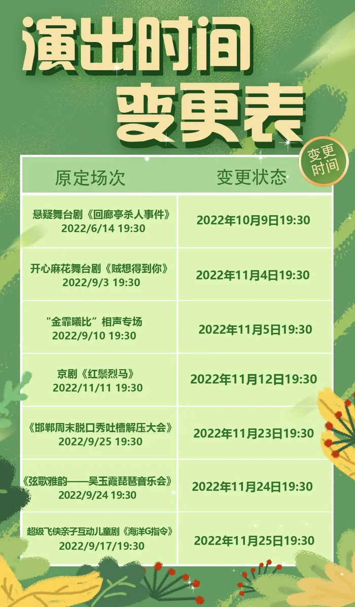 时间:2022年11月6日(周日)19:30