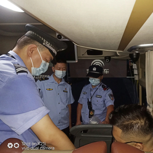 桂林市打传办在警方的配合下检查“一日游”大巴车。桂林市临桂区市场监管局供图