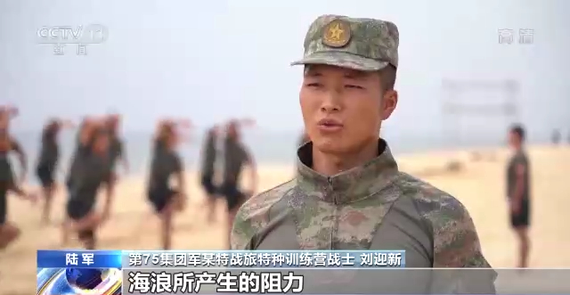 陆军第75集团军某特战旅特种训练营战士 刘迎新:海面风浪很大,海浪所产生的阻力与水中视角限制等因素,都极大提升了训练难度系数,这对我们的身体条件和心理素质都是一次不小的挑战。