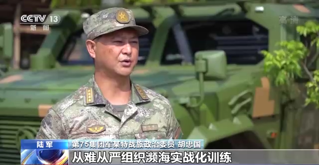 陆军第75集团军某特战旅政治委员 胡忠国:围绕特种部队三栖作战能力生成,从难从严组织濒海实战化训练,进一步摸清部队在陌生环境下的作战技能、极限体能、装备效能,把部队锻造成敢打必胜的利刃尖刀。