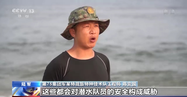 陆军第75集团军某特战旅特种技术队工程师 陈安国:这些都会对潜水队员的安全构成威胁,这时我们通常采取以老带新的方式,帮助他们适应水下环境,从而完成水下渗透、水下爆破、水下破拆等课目的训练。