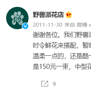 消费者只需要微博私信野兽派你的故事,野兽派就会根据故事定制一束鲜花,小束花的价格是150元,中束花的价格是300元。并且事后会以匿名的方式,将花束和故事打包进行营销宣传。