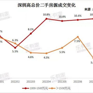 乐有家研究中心数据显示,深圳8月份144平以上的豪宅房源成交占比显著提高。与2021年12月比,彼时144平的大面积二手房源成交占比仅为4.4%,到近期已经上涨至8.2%。