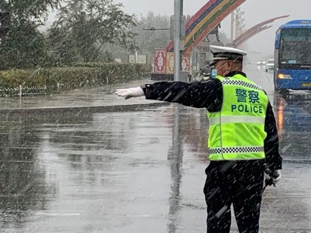 9月22日,内蒙古锡林郭勒盟雨夹雪天气,交警大队加大路面管控和指挥疏导力度。内蒙古交警图