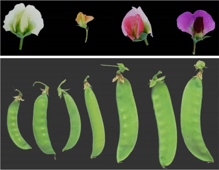 研究人员还揭示了118 个栽培和野生豌豆种质的基因组变异式样,解决了长期以来关于豌豆属物种划分的争议,证明了埃塞俄比亚豌豆是与野生豌豆和栽培豌豆不同的独立物种,为豌豆起源驯化提供了新的见解。研究分析鉴定出了 25 个与12个豌豆重要农艺性状相关的数量性状位点(QTLs),还发现了两个先前已知的控制粒型(圆粒/皱粒)和株高(高/矮)的孟德尔基因R 和Le,以及一个与荚型(硬荚/软荚)相关的候选基因。
