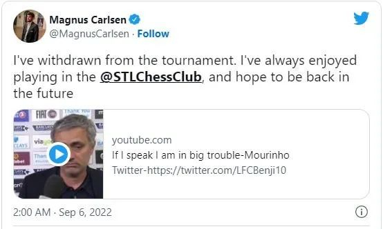 卡尔森并未解释退赛原因,但他在社交媒体上更新退赛的相关消息时,转发了一段知名足球教练穆里尼奥的视频,穆帅在视频中有“如果我说话,就有大麻烦了”的言论。外界解读卡尔森此举似乎在影射尼曼有不公平竞赛的嫌疑。随后美国棋手中村光在网络直播中表示,卡尔森退赛是因为尼曼有“不被允许的行为”。