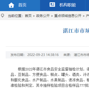 中国质量新闻网讯 近日,广东省湛江市市场监督管理局发布关于8批次食品不合格情况的通告(2022年第4号)。通告显示,该局近期组织抽检27大类食品785批次样品。其中,抽检速冻食品样品26批次,根据食品安全国家标准检验和判定,全部合格。