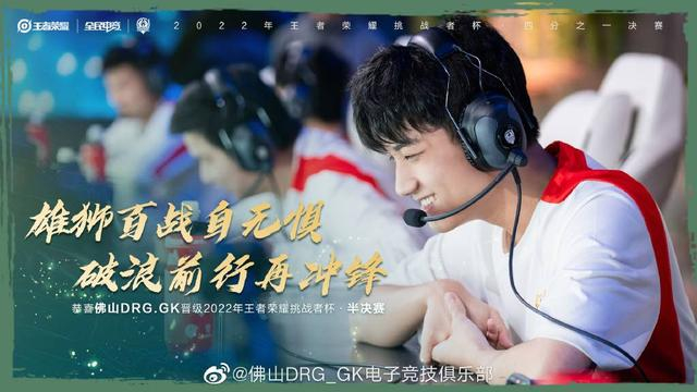 9月22日,佛山DRG.GK在无锡举办的2022王者荣耀挑战者杯四分之一决赛上4:1击败了苏州KSG,成功进入半决赛。