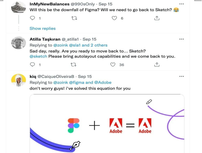 值得注意的是,这一桩收购案宣布后并没有在圈内迎来一片欢声鼓舞,反而在Twitter、Reddit上被一众开发者“喷”上热搜,纷纷表示对Figma的惋惜。