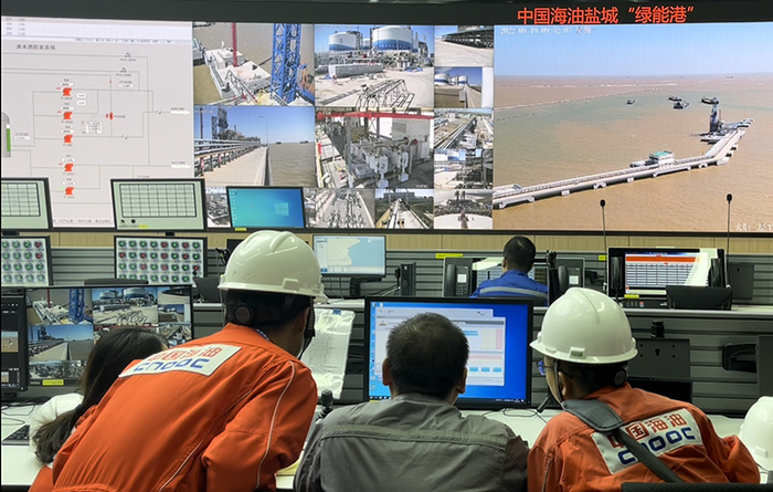 “罐体已经提前3天进行了冷却,整个接卸工作基本都是全自动智能操控。”让张琭和同事感到自豪的是,建造“绿能港”这个超级工程,全体参建人员攻坚克难,屡创佳绩,很多工程技术都是有国内团队自主研发建设的。“这次由中国海油自主设计的液化天然气(LNG)卸料臂,首次在中国海油盐城“绿能港”投入使用,项目整体设备材料国产化率达96.58%。且项目运行均应用‘智慧港口’系统,可实时掌握、调控、追溯运行状况。”