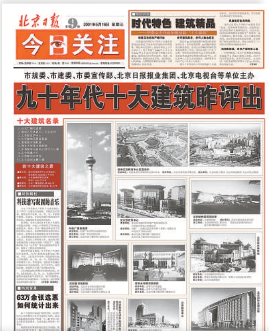 2001年5月16日《北京日报》第9版,上世纪90年代十大建筑评出。