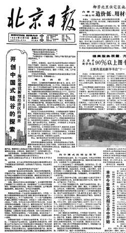 1984年9月11日,《北京日报》1版,首次提出中关村是中国的硅谷。
