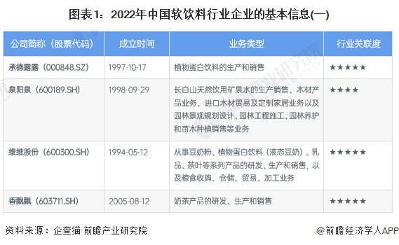 软饮料行业主要上市公司:承德露露(000848.SZ);泉阳泉(600189.SH);维维股份(600300.SH);香飘飘(603711.SH);养元饮品(603156.SH);均瑶健康(605388.SH);李子园(605337.SH);欢乐家(300997.SZ);东鹏饮料(605499.SH);康师傅控股(00322.HK);农夫山泉(09633.HK);统一企业中国(00220.HK);中国食品(00506.HK);西藏水资源(01115.HK)等