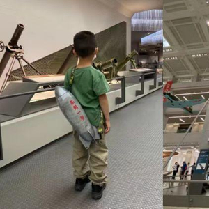 近日,有游客在游览军博后感叹:“军博也出爆米花桶了,东风一号!除了爆米花还附有说明书、馆藏编号,小朋友还能搂着‘东风一号’跟全尺寸真品合影。”