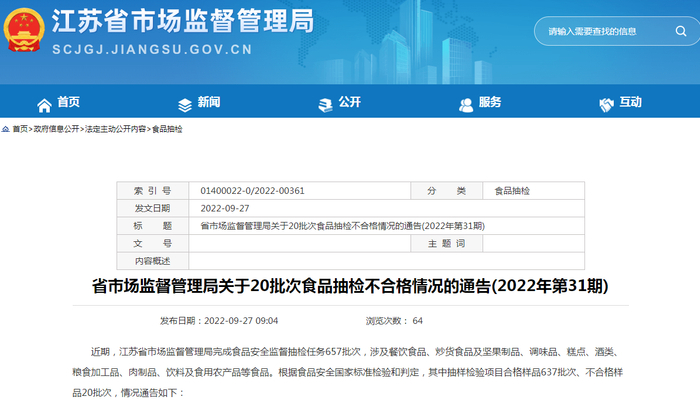 江苏省市场监管局抽检糕点153批次 合格151批次