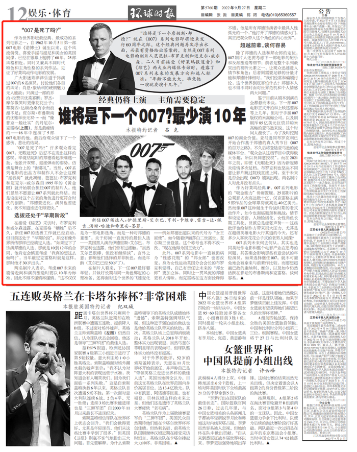 在制片人看来,下一任007最好要年轻,并做好长期与同一角色绑定的心理准备,还得面对这个世界的飞速变化——例如邦德出道以来的代号为“女王密使”,如今随着伊丽莎白二世离世,查尔斯三世登基,这个称号也不得不改一改,“现在他得为国王效力”。