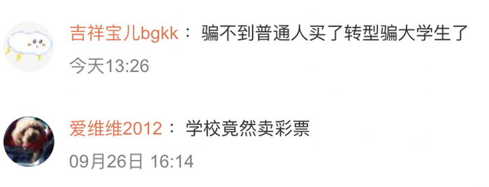 有部分网友对大学里开彩票站表示质疑,毕竟大学生没有收入,万一沉迷于此不太好。