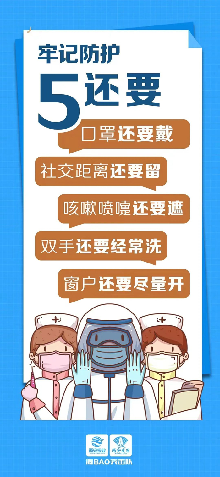 日常要坚持科学佩戴口罩、做好个人卫生、保持社交距离“防疫三件套”,牢记口罩还要戴、社交距离还要留、咳嗽喷嚏还要遮、双手还要经常洗、窗户还要尽量开“五还要”。当我们接到“流调”电话,请一定认真对待积极配合,按要求主动并如实报告个人健康状况和接触史,包括到过的地方、接触过的人员等信息,切实做到不隐瞒、不谎报。