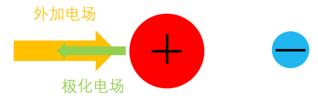 如此就形成了一个偶极子。偶极子会再产生一个电场叠加到外部施加的电场上,从而改变外部电场的大小和方向。这个过程就是电场的极化过程。