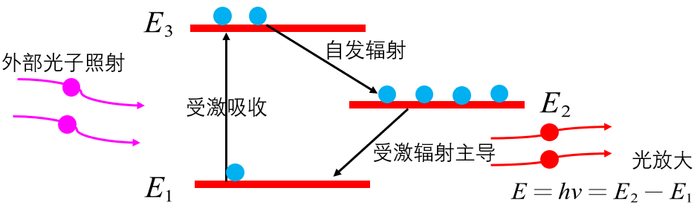 那么如何使受激辐射过程更有优势呢?答案是:只要保证处在高能级的电子数目比处在低能级的电子数目多就可以了,这就是粒子数反转[2]。