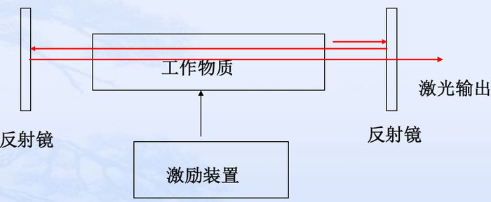 我们可以在激光工作物质(比如红宝石)两端安装两个相互平行的反射镜,这两个反射面组成了一个谐振腔,这时只有和反射镜轴平行的光才能在内部不停来回反射[2]。