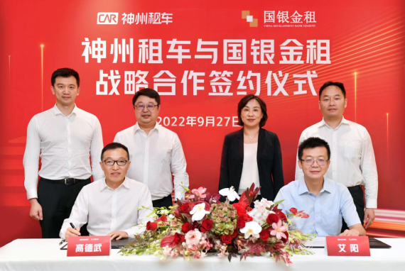 2022年9月27日, 上海,中国头部汽车租赁品牌神州租车与金融租赁巨头国银金租签署战略合作协议并达成100亿元人民币的合作额度,这是两巨头继今年6月份签署首个合作协议之后,短时间内再次大幅度加码合作额度,双方将利用各自的行业资源优势共同推动中国出行领域新生态发展。