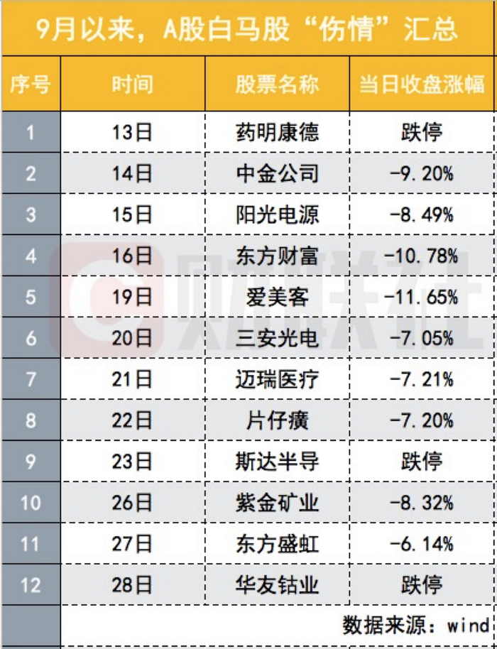 财联社9月28日讯(记者 闫军)还是熟悉的配方,还是熟悉的味道。A股从9月13日起一天杀一只白马股的节奏未停,千亿锂电龙头华友钴业放量跌停,主力资金净流出达4.35亿,中证800有色跌幅达5.14%。