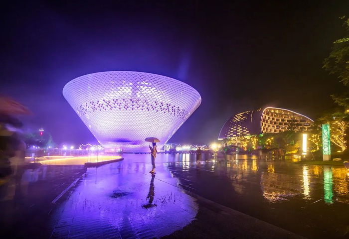 2021年5月,景德镇昌南里艺术中心“大瓷碗”夜景(景德镇市委宣传部/供图)