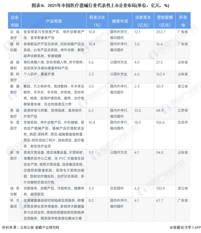 4、中国医疗器械行业企业布局及竞争力评价
