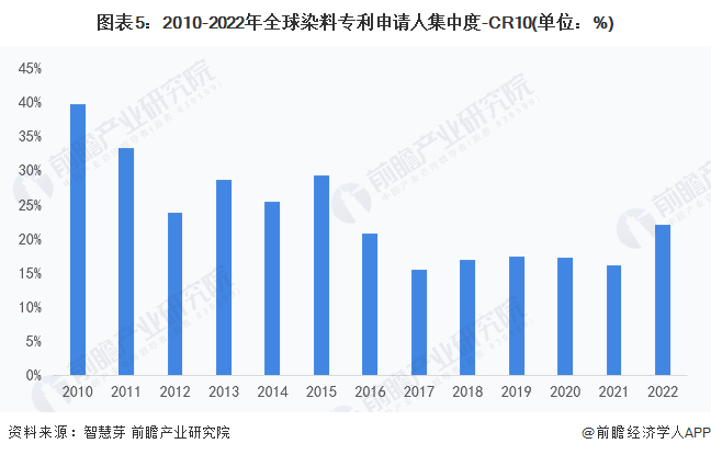 收藏!2022年全球染料行业技术竞争格局(附区域申请分布、申请人排名、专利申请集中度等)
